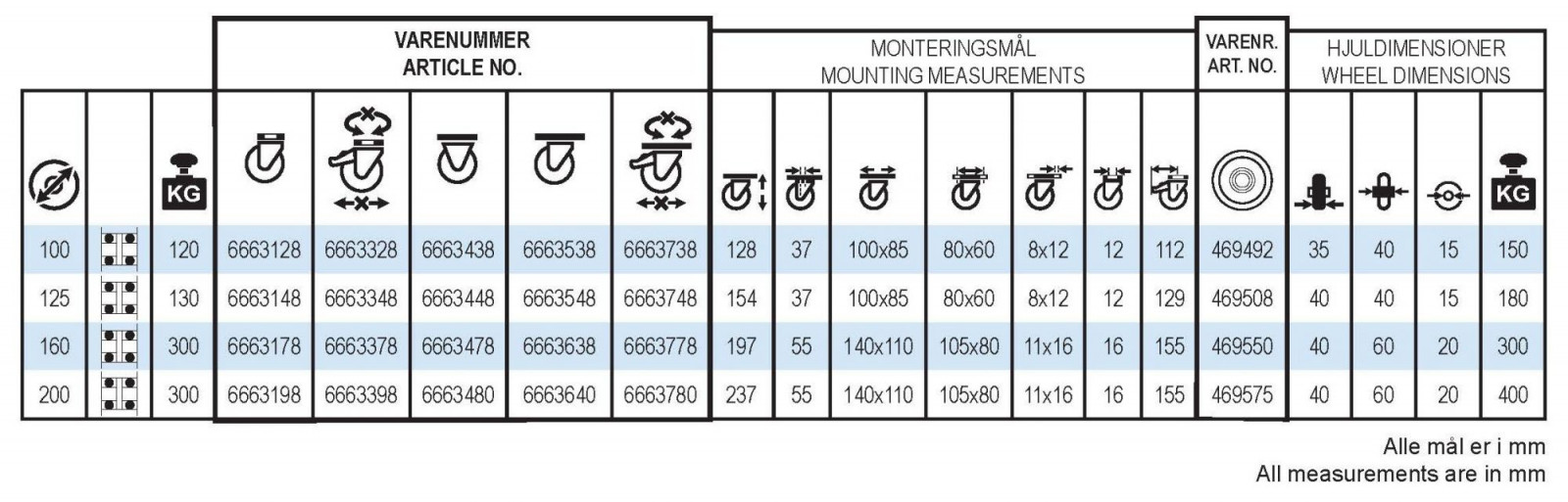 | Hjuldiameter: | 100-200 mm |