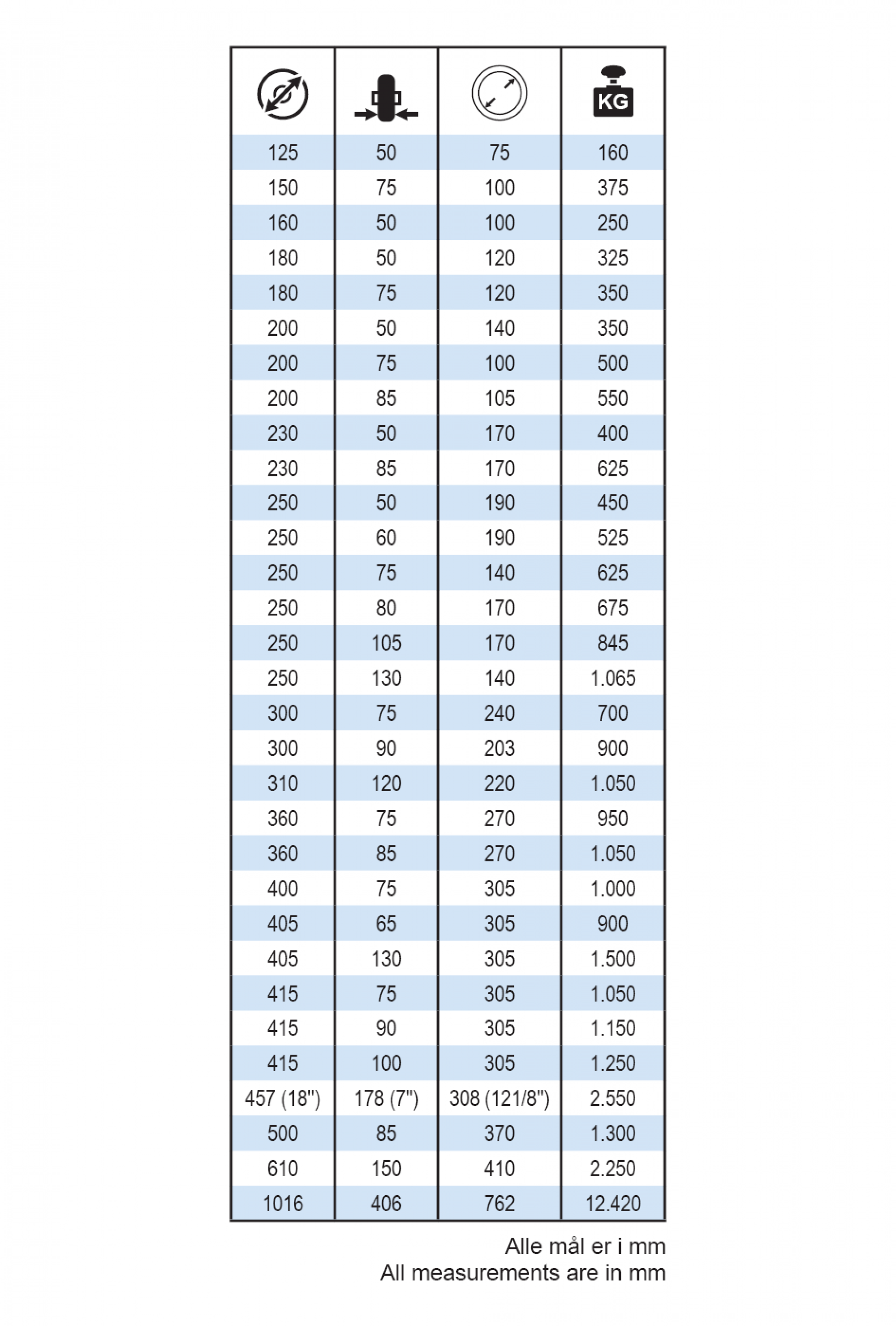 Disse hjulbandager er i elastisk gummi, shore 65A. Gummibandagerne kan leveres med ståltrådsindlæg, på stålring eller komplet med kugleleje- eller notgangsnav. Hvis den ønskede størrelse ikke skulle fremgå af tabellen, har vi flere størrelser tilgængelige, også i tommemål.