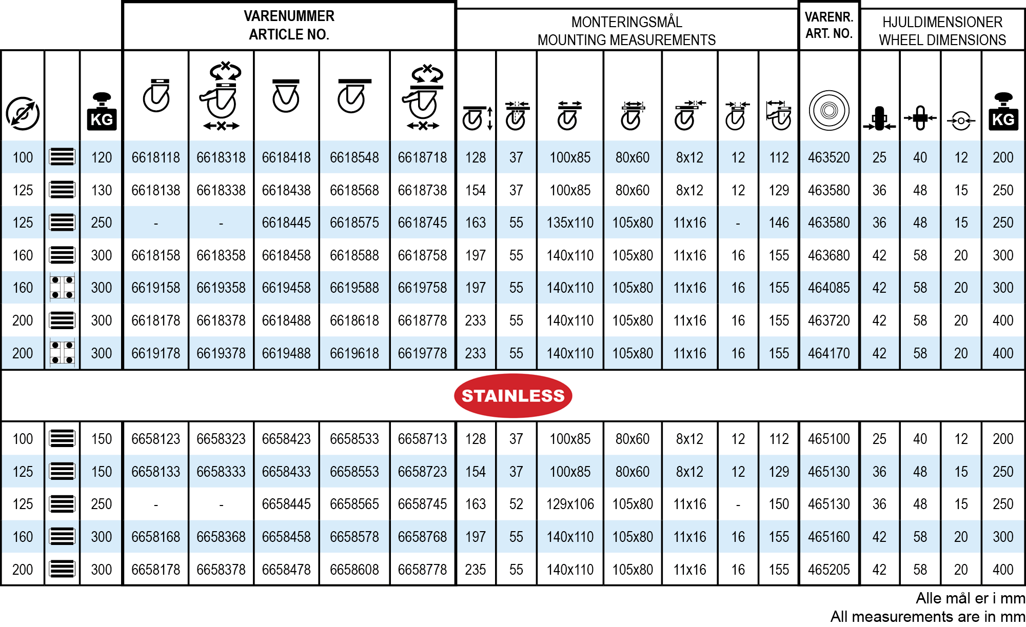 | Hjuldiameter: | 100-200 mm |