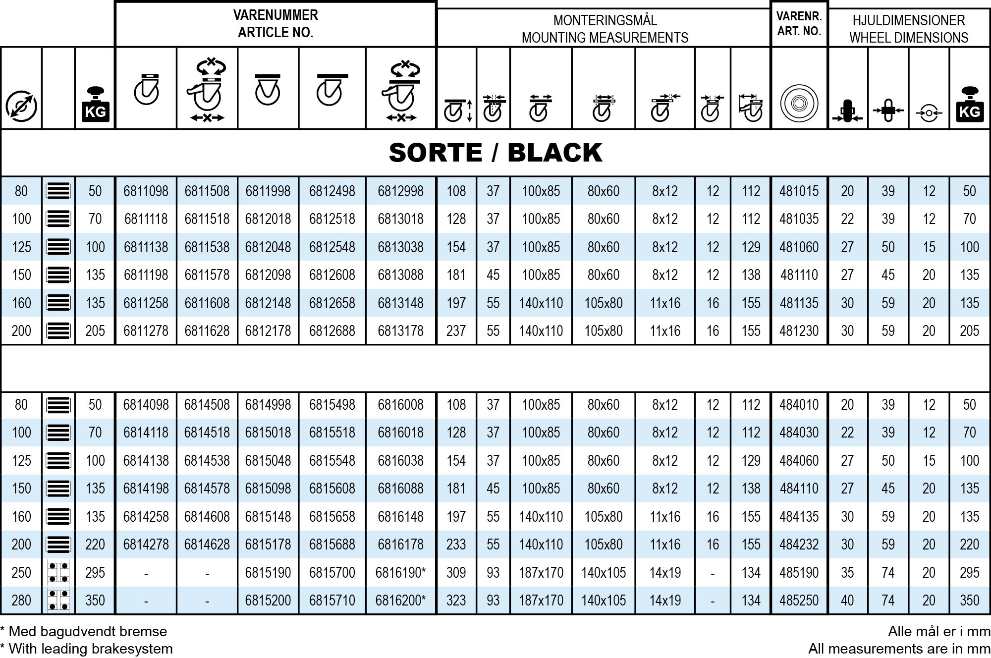 Hjuldiameter: | 80-280 mm |