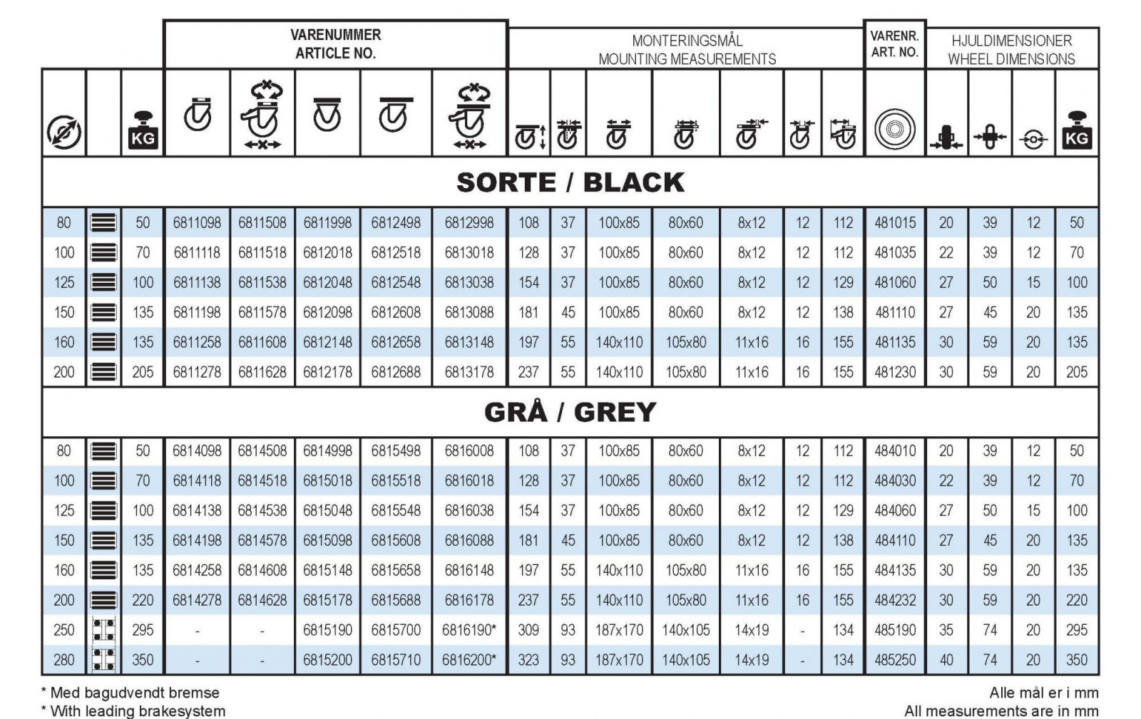 | Hjuldiameter: | 80-280 mm |