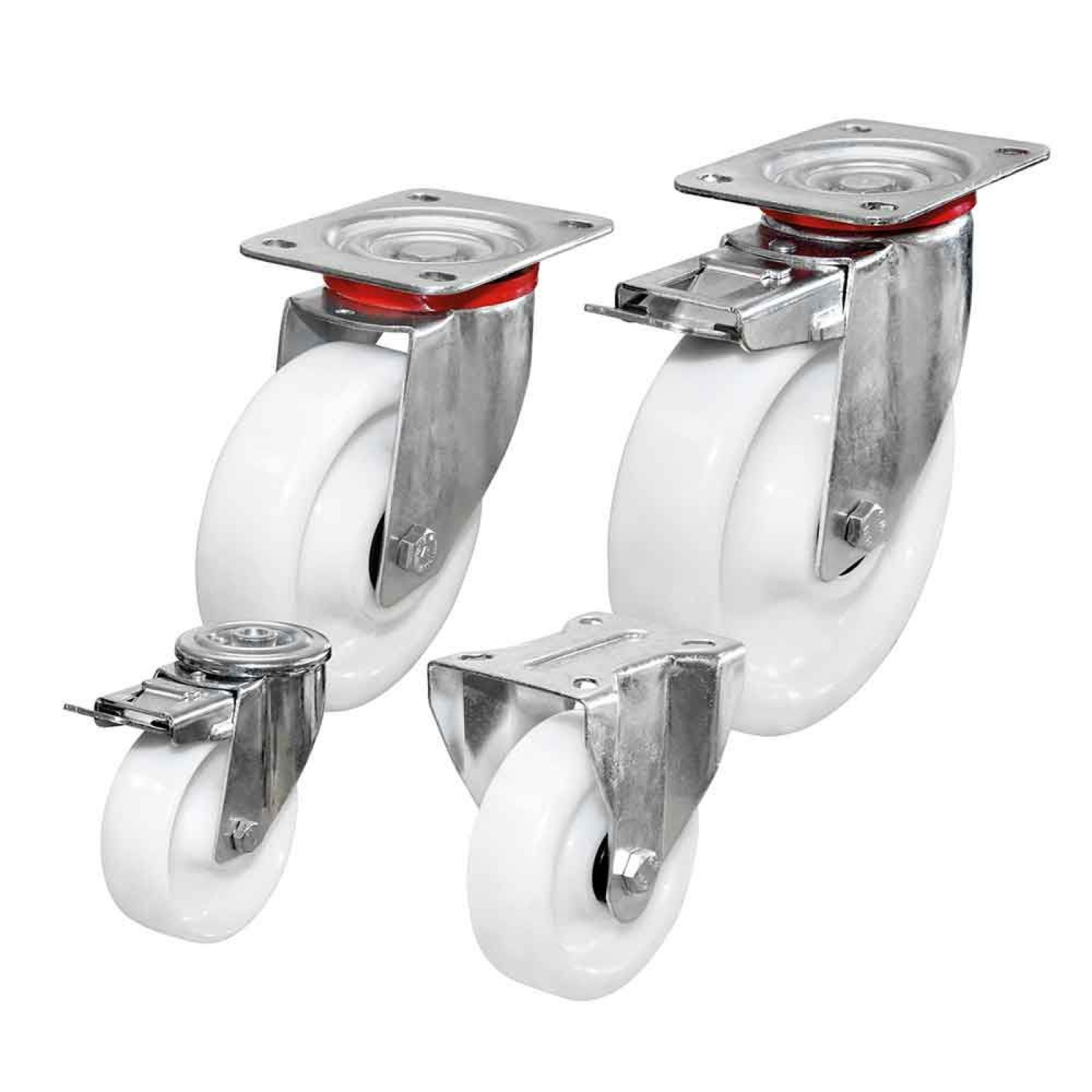 Til oversigtenHvide kunststofhjul af polypropylene shore 62D +/-2.