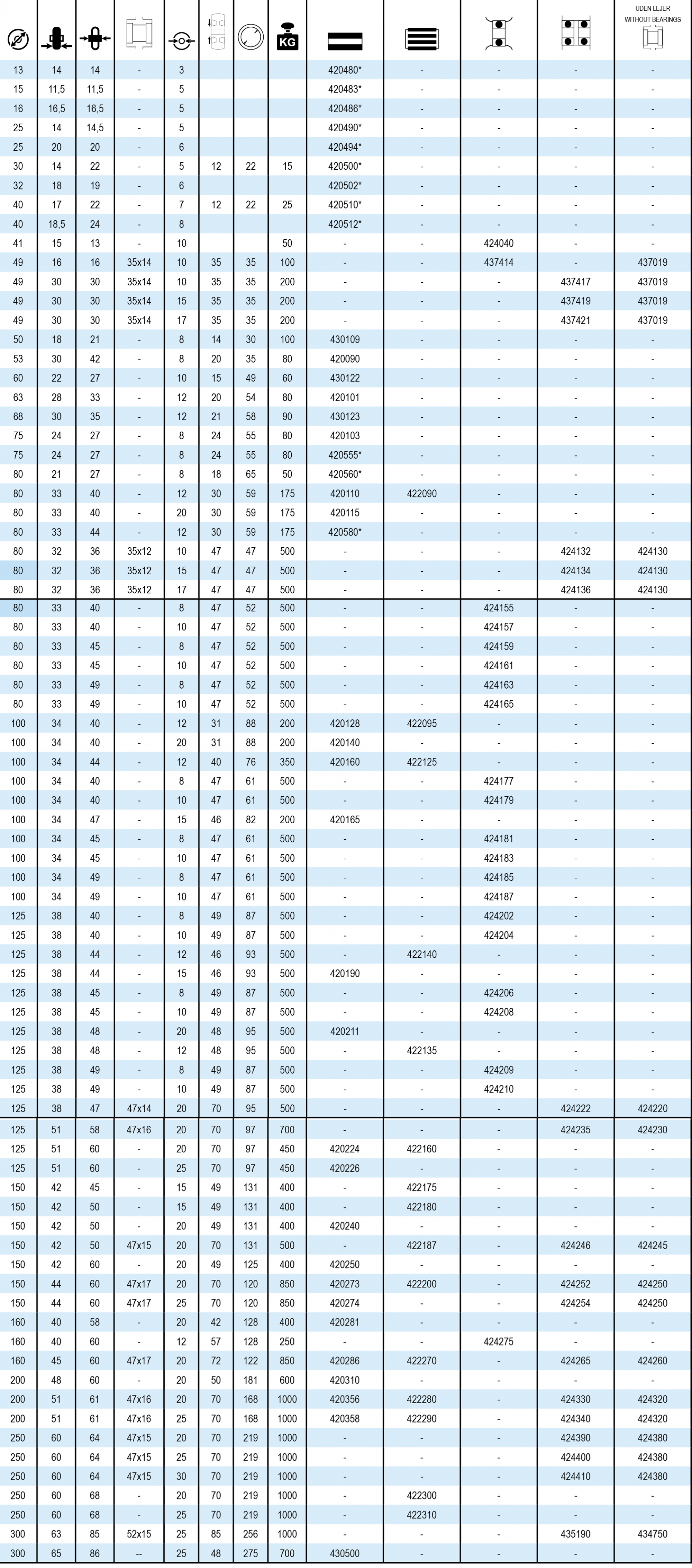 Rulle- og kuglelejehjul kan leveres med rustfrie lejer.