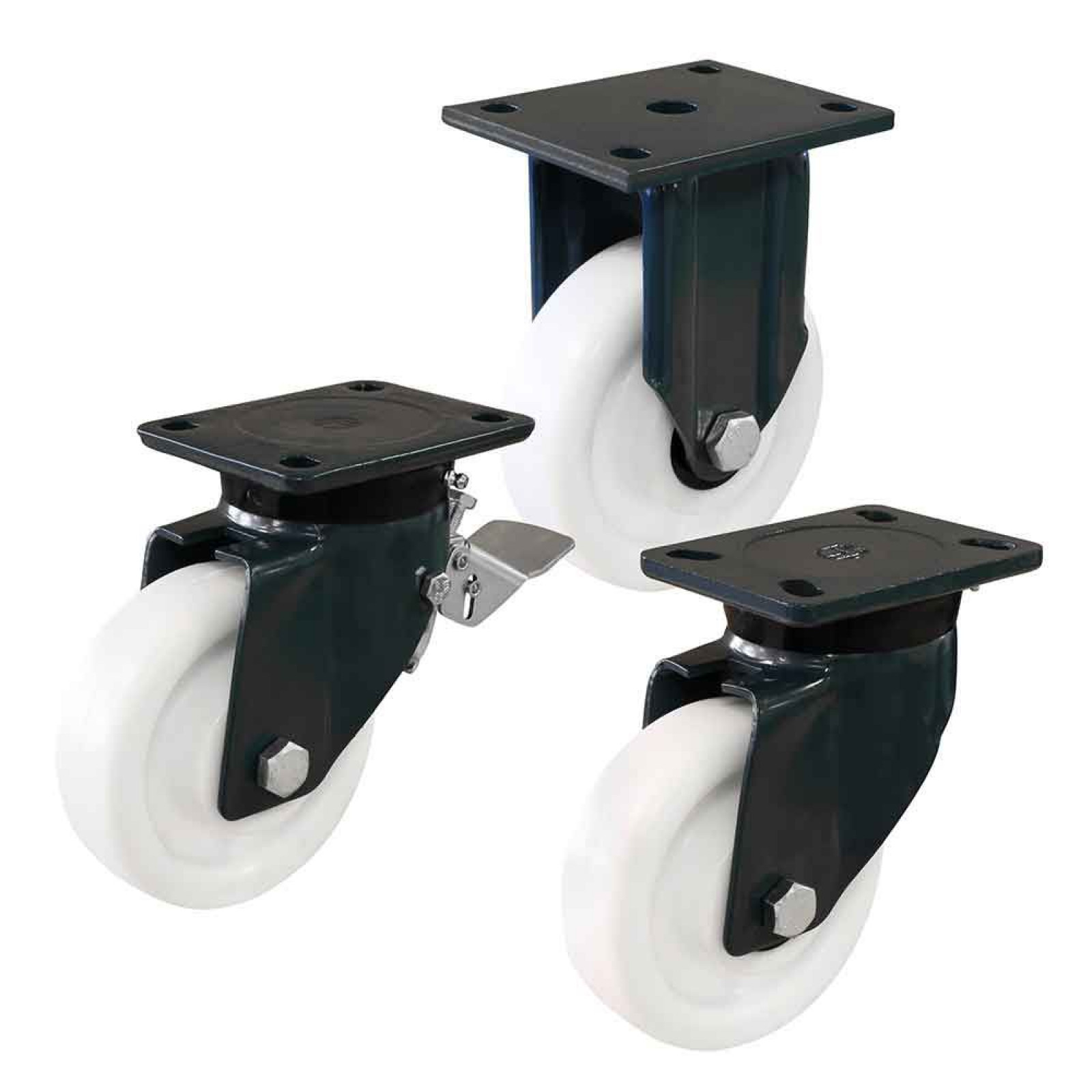 Hvide kunststofhjul af polyamid shore 62D +/-2.