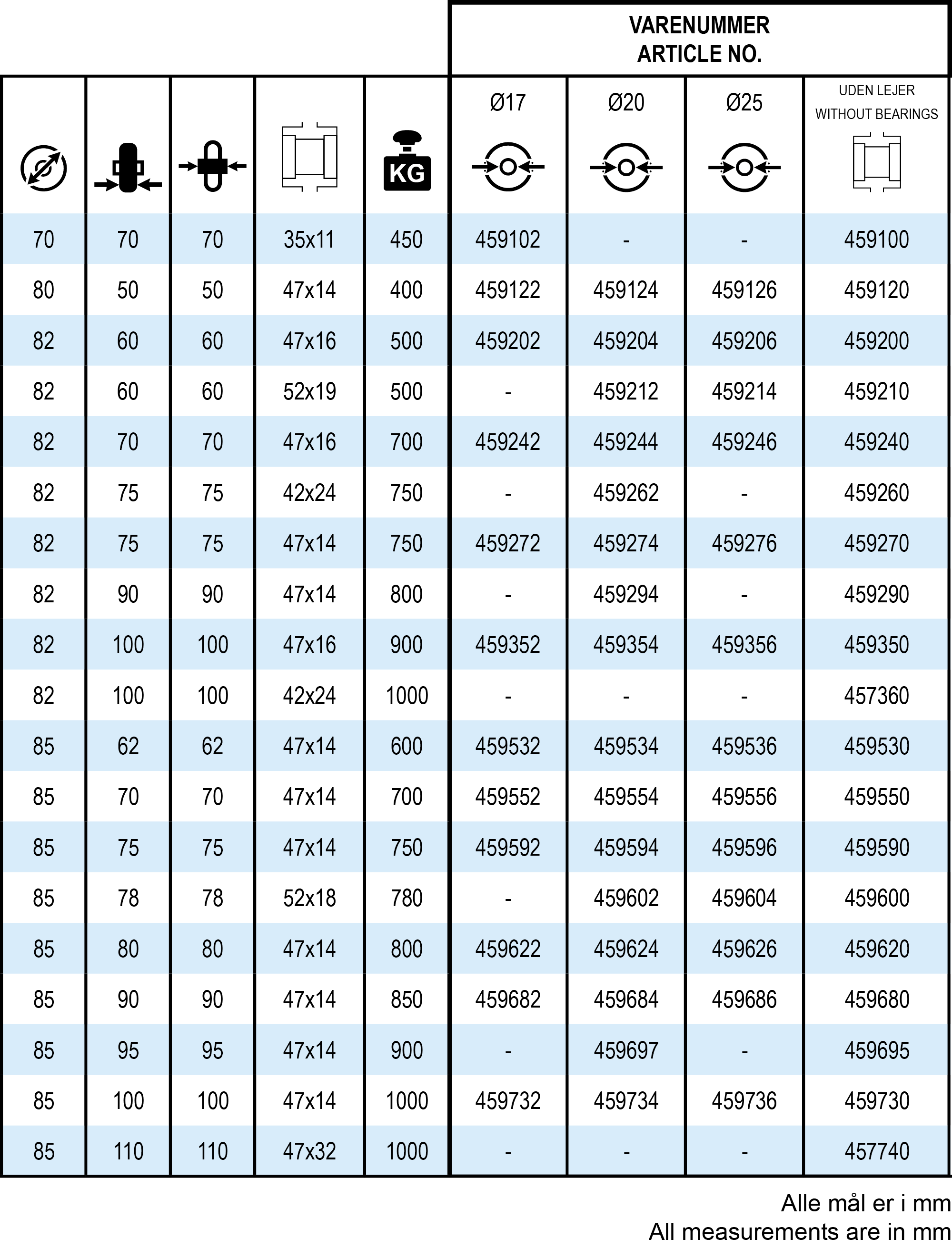 Fås også monteret i gafler. Belastning op til 800 kg.