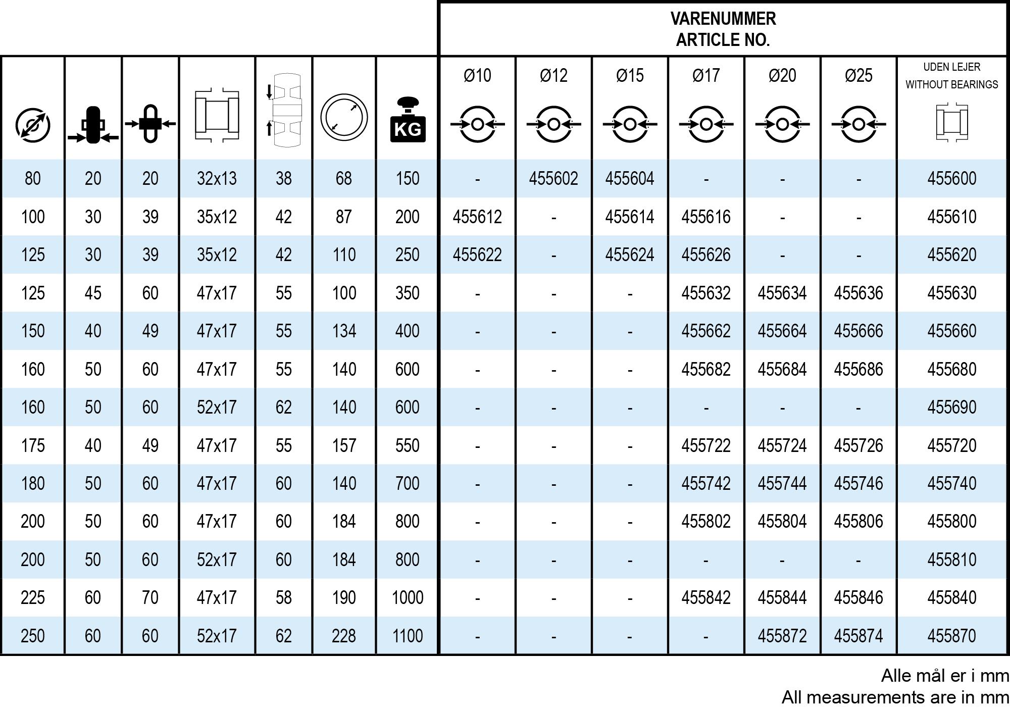 Polyurethanbane shore 92A +/-3 vulkaniseret på aluminiumscenter.