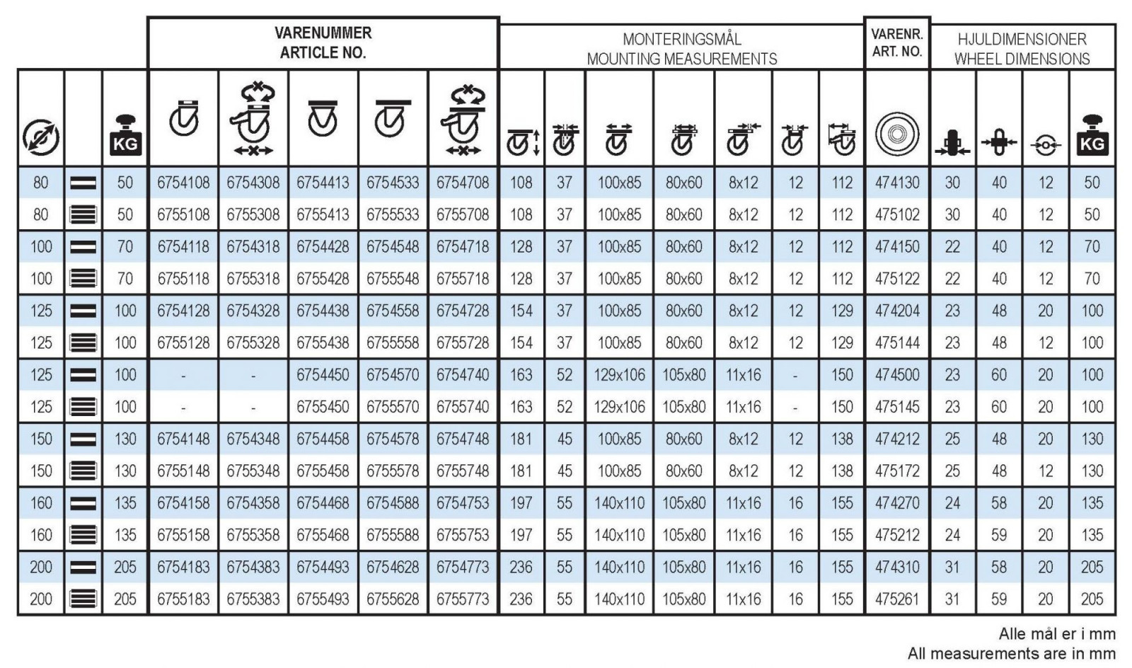 | Hjuldiameter: | 80-200 mm |