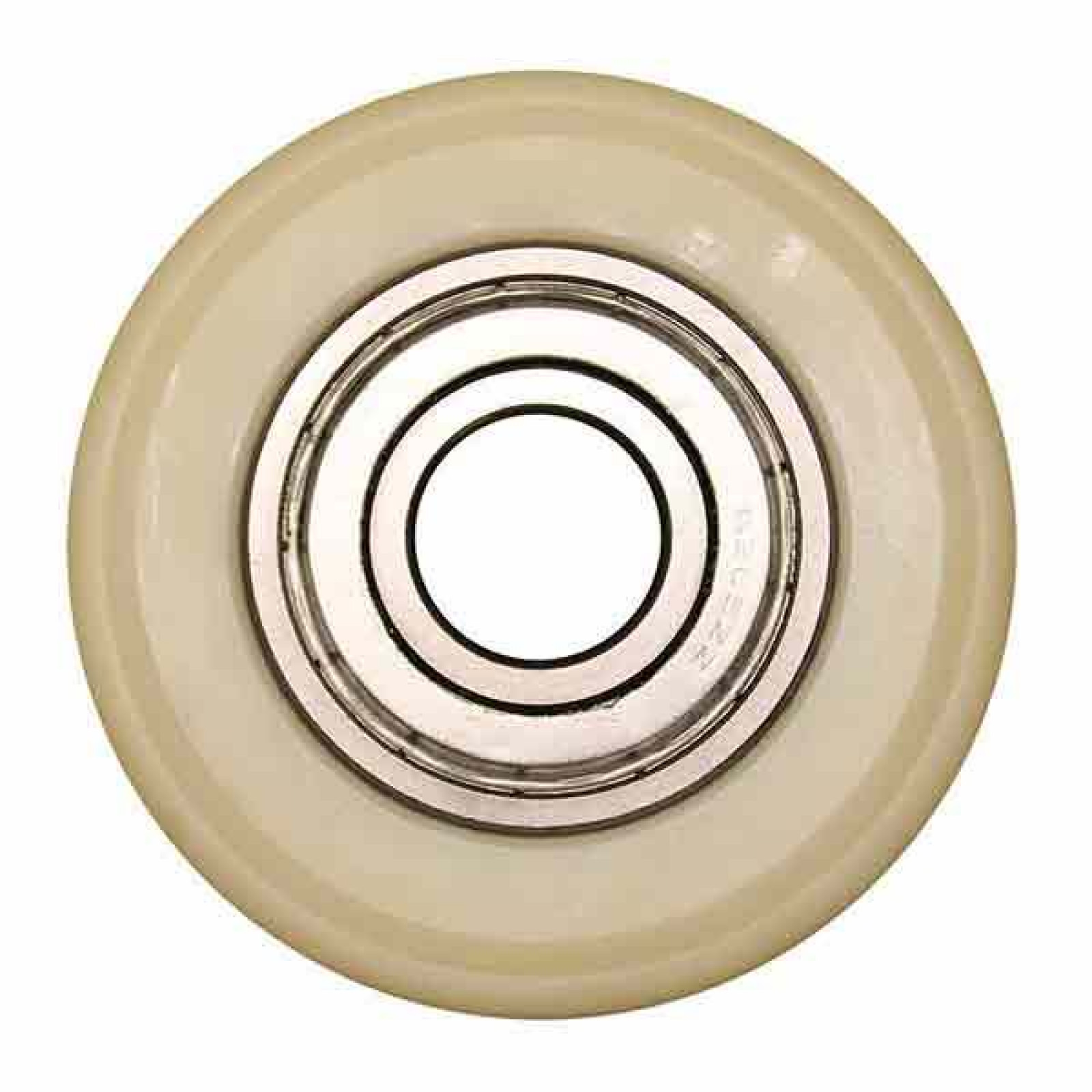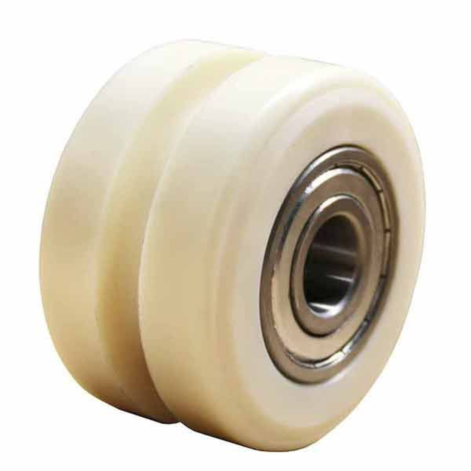 Armeret nylonhjul med U-spor, så kørsel kan styres af en lille skinne i/på gulvet.